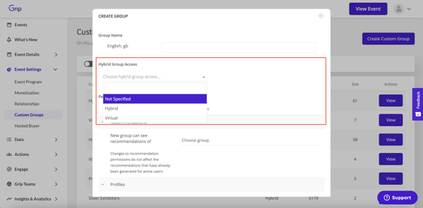 In this article, we’ll explain how Custom Groups work in Grip. You'll learn how to create and manage Custom Groups, set permissions, and explore common use cases such as separating Hybrid and Virtual participants in events.