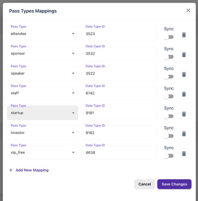| Pass Types Mapping | Here you map the pass types of Grip Manage to the Participant Data Types of Grip Engage. |