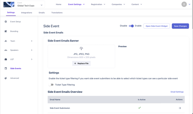 - Add a Side Event Email Banner: This banner will be used for all emails related to Side Events.