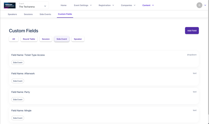 Custom Fields for Side Events