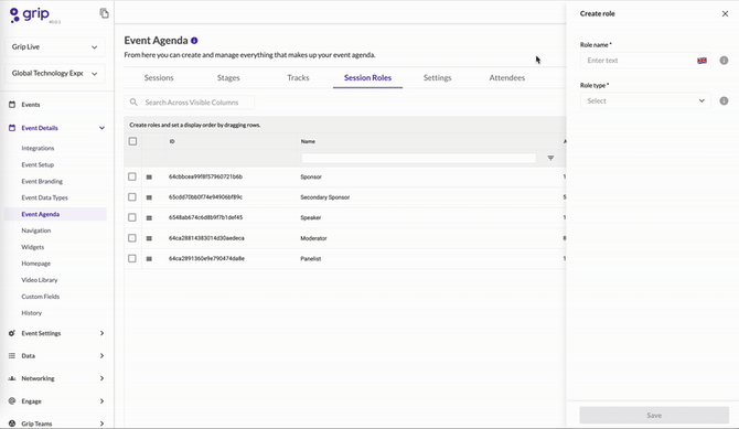 - The default “Speaker” role cannot be deleted or edited, and is always automatically created as event in Grip is created.
